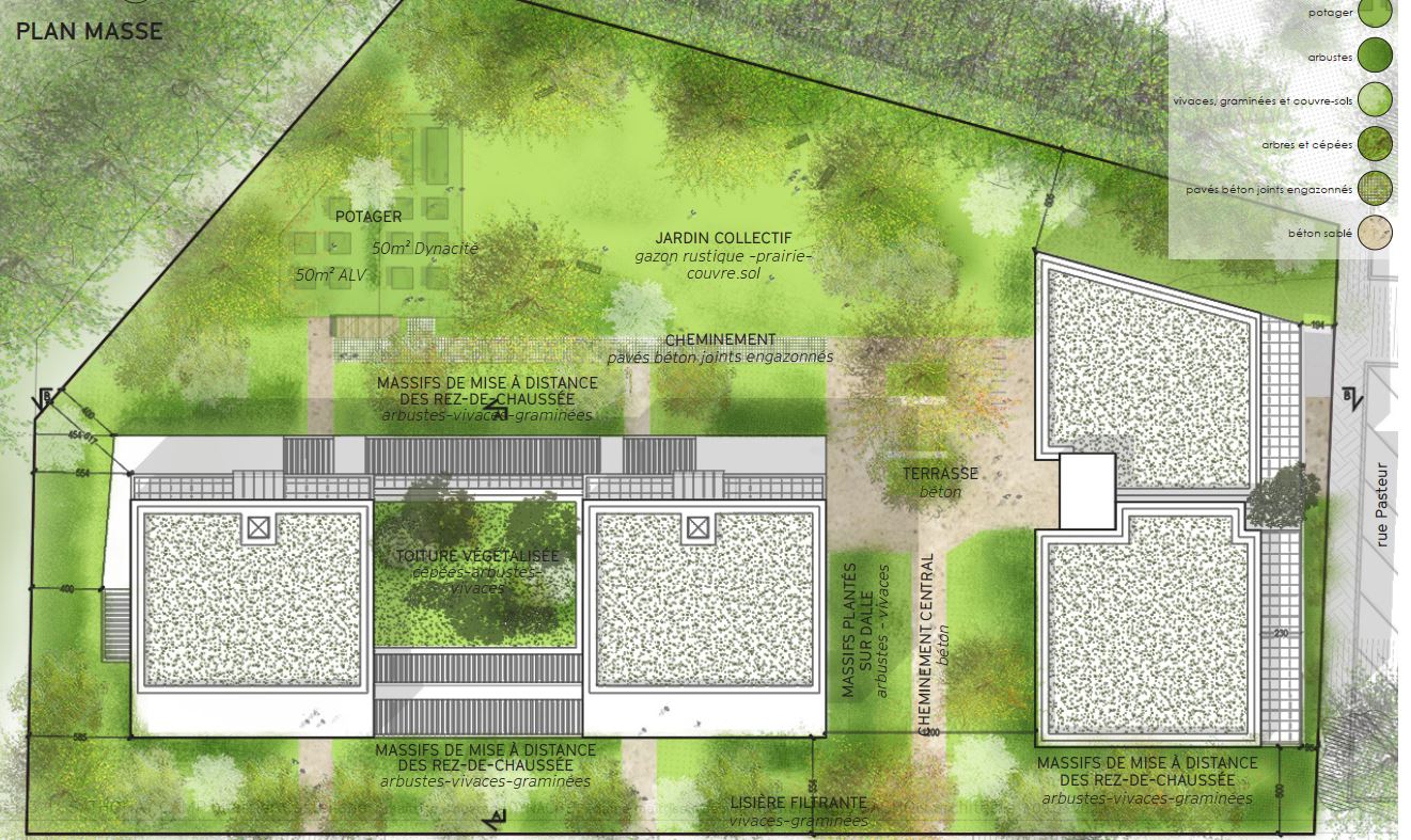 #Bas carbone #Confort & Santé #référentiel habitat durable du Grand Lyon #certification BEE #confort d'été #forte intégration du bois #laine de bois #potager #compost #jardin collectif
