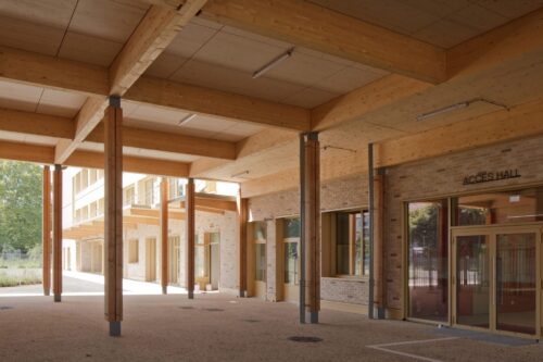 Le collège Katia Krafft est certifié HQE Bâtiment Durable avec un niveau 'Excellent' et pourrait revendiquer le niveau 3 du label Bâtiment biosourcé avec ses 150 kg/m² ! Grâce à sa structure bois, ses murs et planchers CLT, son isolation paille et ses façades préfabriquées il respecte largement le seuil 2025 de la RE2020. Le confort a été évalué sur un scénario 2050 sans climatisation ni brasseur d'air. Le projet a été suivi par un écologue depuis le diagnostic et jusqu'à la mise en exploitation.