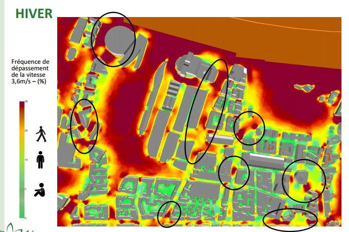 Étude du confort dans les espaces publics : vents et ensoleillement.