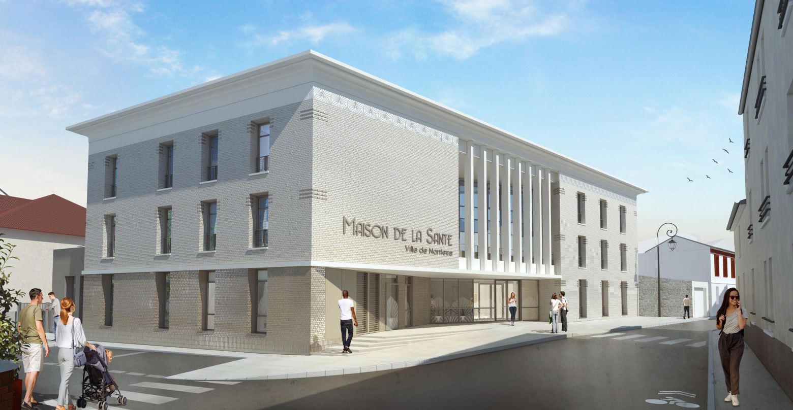 La construction de la maison de santé à Nanterre a pour objectif de regrouper les différents services liés à la santé de la ville de santé, auparavant dispersés dans la ville. La maison de santé comporte deux espaces, le centre municipal de santé (1390 m² SU) et le centre prévention santé (590 m² SU).