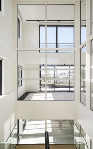 Réhabilitation d’environ 12 500 m² avec conservation maximisée de la structure existante, et une extension entrant dans le cadre de la jauge PLU (environ 500 m²). L’immeuble intègre des plateaux de bureaux adaptés aux nouvelles pratiques de travail, des services associés (business center), des terrasses avec vues.